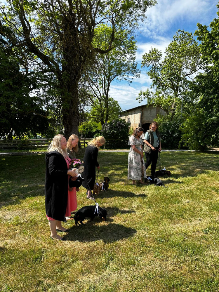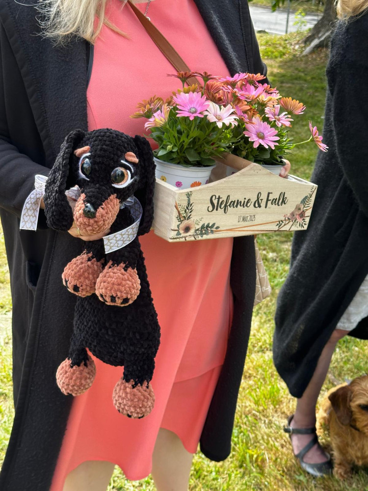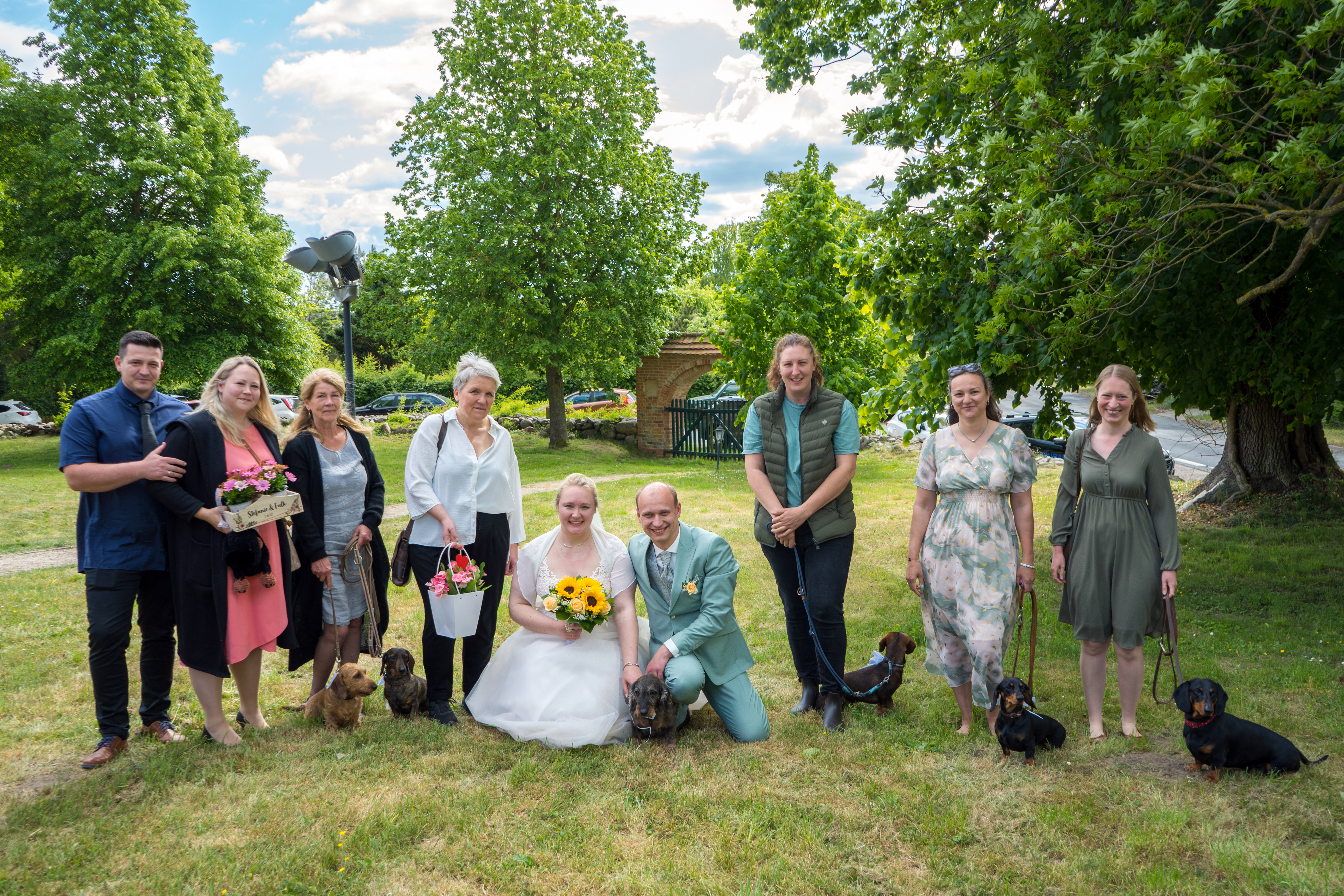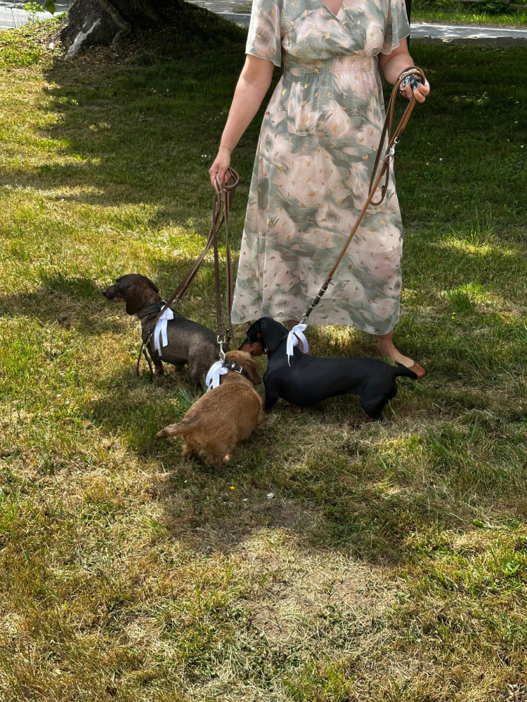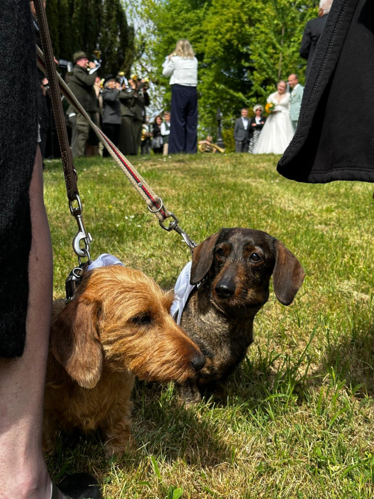 Am Ende des Gottesdienstes sind wir vor die Kirche gegangen, es flogen Tauben, Jagdhornbläser spielten, es wurde sich unterhalten und fotografiert. Auch meine Dackelkollegen aus dem Klub waren da und haben mir gratuliert. Ich glaube, ich habe alles richtig gemacht.