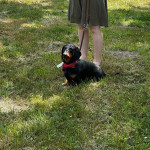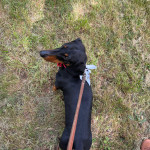 ich bin Arica, eine stattlich gewachsene Dackeldame. Ich habe es geschafft, vor einem Jahr mein Frauchen glücklich zu verheiraten. Ich wurde am 13.07.2013 gewölft. Nachdem ich dem Kindergarten entwachsen bin, durfte ich mir einen Menschen aussuchen. Meine Wahl fiel auf die Stefanie, die hatte scheinbar schon Erfahrung darin einem Dackel die Führung zu überlassen. Unsere Menschen glauben zwar, dass wir auf sie hören … na gut, lassen wir sie in dem Glauben. Wir waren so glücklich, dann kam sie mit so einem gebogenen Blechtrichter an. Das Ding soll Musik machen und heißt Jagdhorn.